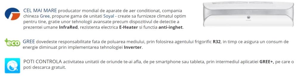 Aparat de aer conditionat Gree Soyal GWH09AKCXD-K6DNA1A 9000 BTU Inverter Clasa A+++ Kit de instalare inclus (Alb)