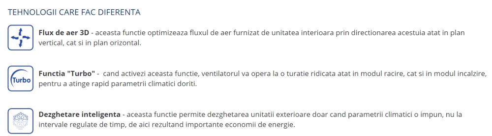 | Zgomot unitate exterioara (dB) | 63 | |