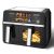 Acest air fryer dispune de doua cosuri independente, de 3.5 si 5.5 litri, ideale pentru a gati simultan doua preparate diferite, fara amestecarea aromelor. Interiorul antiaderent asigura o gatire usoara si curatare rapida, iar fereastra transparenta iti permite sa monitorizezi procesul de preparare fara a deschide aparatul, pastrand temperatura constanta si eficienta gatitului.