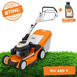 Masina de tuns iarba pe benzina STIHL RM 448 T este potrivita pentru lucrari private pe peluze de dimensiuni medii. Transmisia confortabila cu o singura viteza va ajuta sa avansati eficient, in special pe pante. Datorita motorului puternic, ingrijirea peluzei se face rapid. Datorita echiparii standard cu cutit multiplu, functie de mulcire integrata si evacuare laterala, aceasta masina de tuns iarba este potrivita atat pentru tuns, cat si pentru mulcire. Puteti colecta direct resturile de iarba taiata sau le puteti distribui pe gazon prin evacuarea laterala.